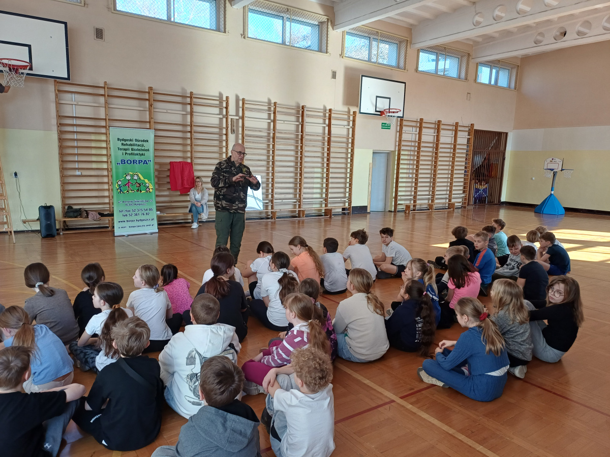 W dniu 13 marca 2026 r. nasza szkoła, Szkoła Podstawowa nr 38, miała przyjemność gościć przedstawicieli Bydgoskiego Ośrodka Rehabilitacji, Terapii Uzależnień i Profilaktyki „BORPA”. Wydarzenie odbyło się w ramach prestiżowego projektu profilaktycznego „Aktywni razem – wolni od uzależnień”, który jest objęty patronatem Prezydenta Bydgoszczy.