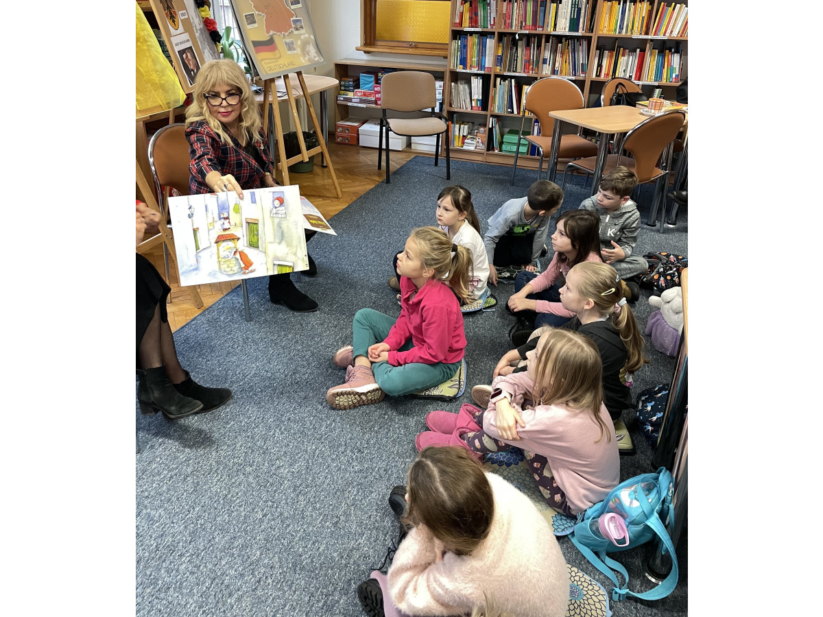 W ramach innowacji pedagogicznej klasa Ib odwiedziła Wojewódzką Bibliotekę Pedagogiczną w Bydgoszczy, by posłuchać 2 baśni braci Grimm. Zarówno „Pani zima”, jak i „Gwiazdy talary” wprowadziły klimat zimowy, a mądre przesłania uzmysłowiły, że warto pomagać i wierzyć w dobro. Uczniowie poznali też nowe słownictwo z języka niemieckiego, tworząc przy tym karty pracy i bawiąc się w gry językowe.