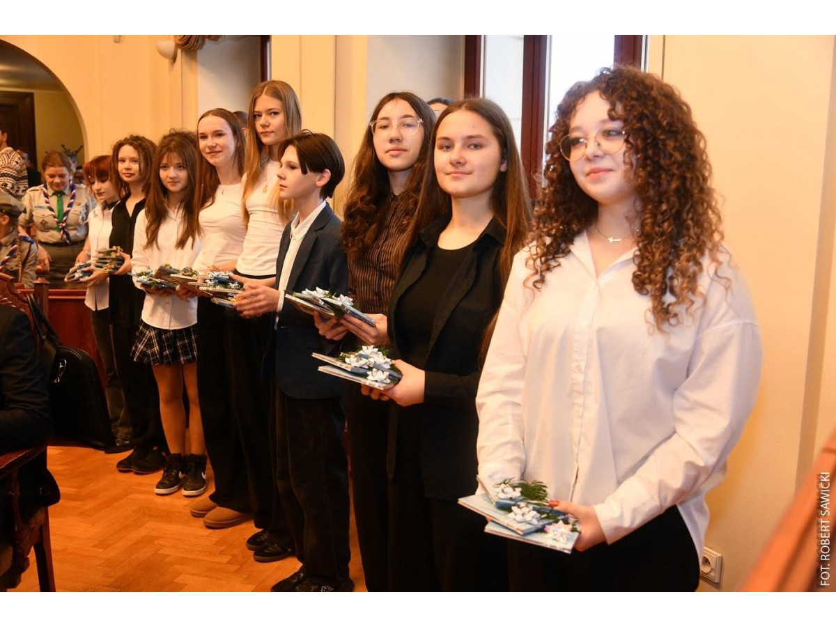 Przedstawiciele szkolnych chórów wraz z panią dyrektor Anną Urban i dyrygentką Roksaną Ptasznik mieli okazję wręczyć efekt swojej pracy Prezydentowi Rafałowi Bruskiemu oraz jego zastępcom i radnym Miasta podczas sesji Rady Miasta 17.12.2025 r. w ratuszu. To było wyjątkowe przeżycie!