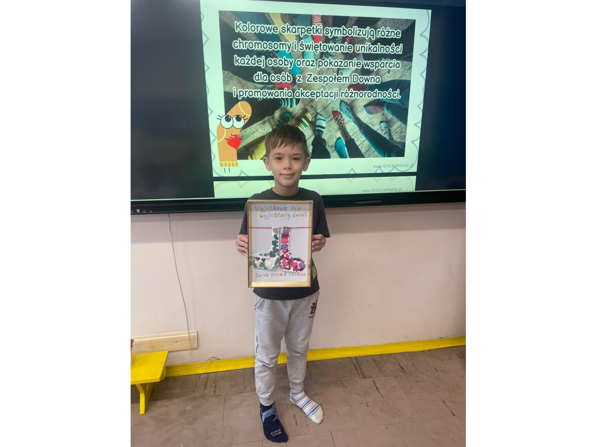 W ramach obchodów zorganizowano również konkurs plastyczny dla uczniów klas I–IV na najładniejsze kolorowe skarpetki. Nasi uczniowie wykazali się ogromną kreatywnością i zaangażowaniem. Rozstrzygnięcie konkursu nastąpi już wkrótce, na autorów najciekawszych prac czekają atrakcyjne nagrody.