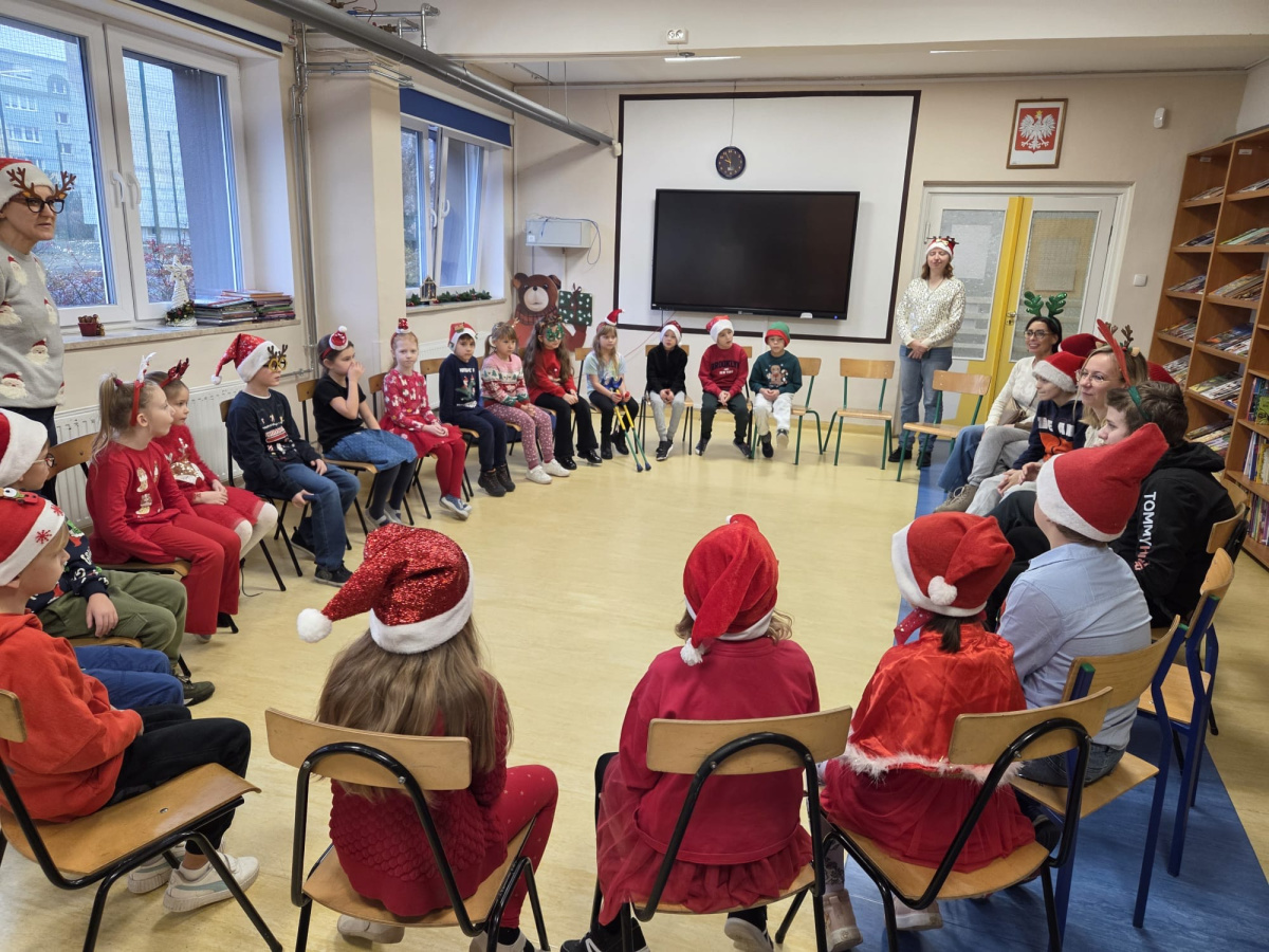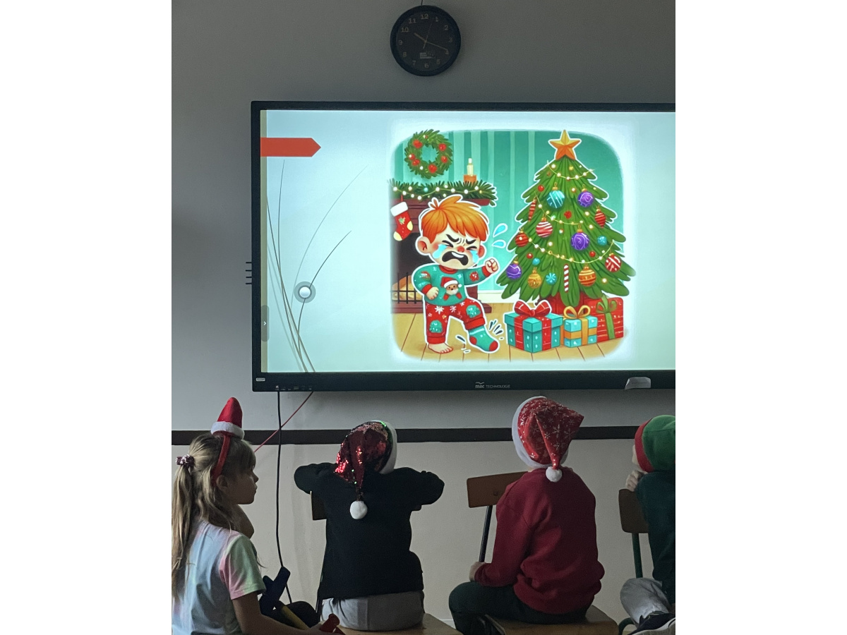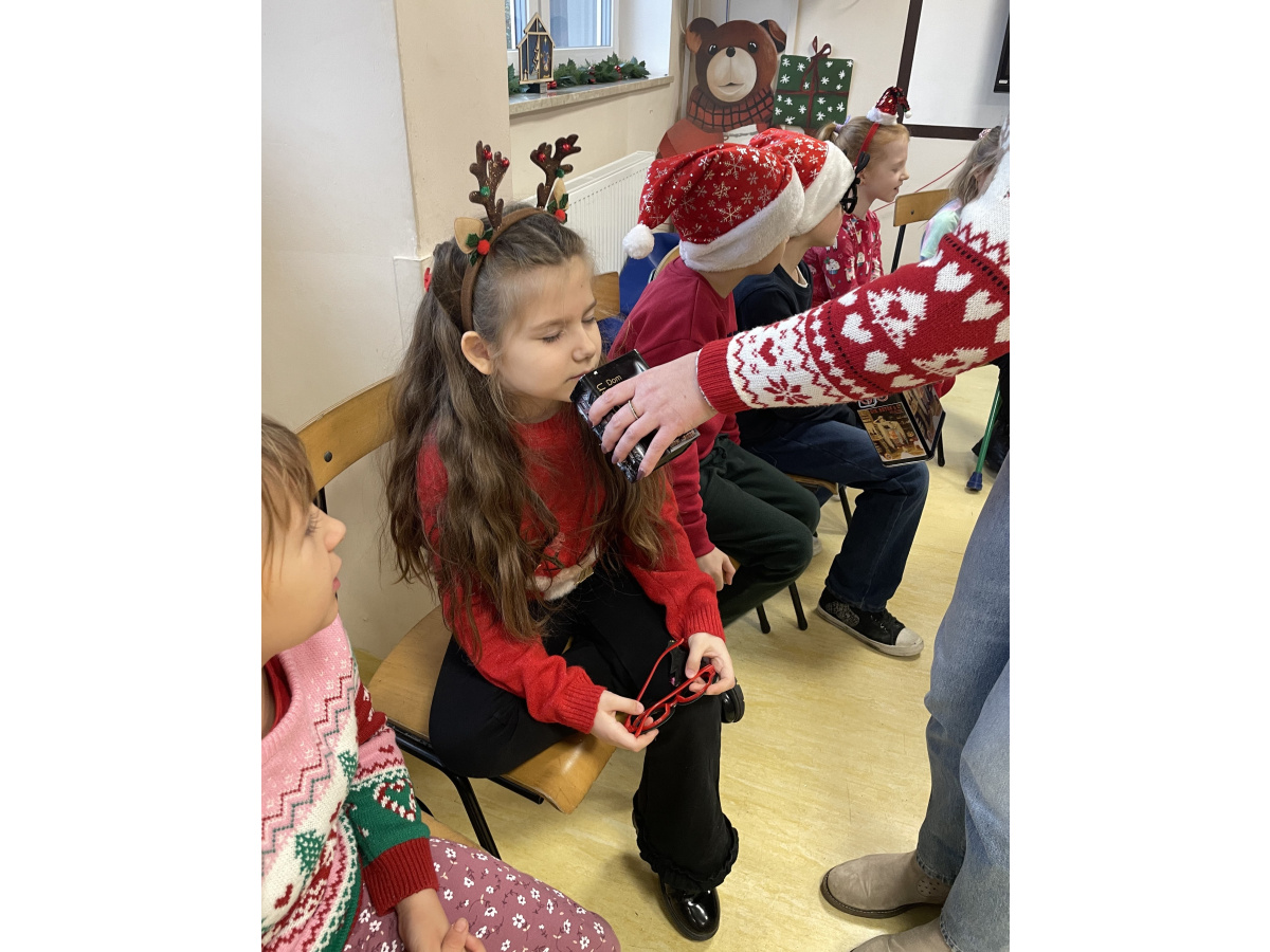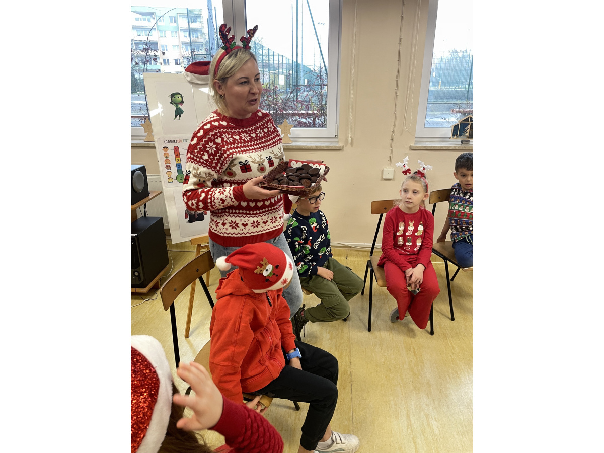 4 grudnia br. w ramach projektu „Emocje w empatii” realizowanego wraz z MOEN w Bydgoszczy, uczniowie klasy 1a gościli w SP 38 swoich kolegów z SOSW przy ul. Granicznej. W mikołajkowej atmosferze uczestnicy rozpoznawali poprzez 5 zmysłów podstawowe emocje. Słuchając piosenki o „Dziewczynce z zapałkami” odczuli smutek, wąchając pierniczki, świerk, pomarańczę, cynamon i goździki ogarnęła ich radosna atmosfera, a z strachem dotykali zawartość prezentów-niespodzianek. Poprzez wzrok dowiedzieli się, że święta też czasami przynoszą złość. Na koniec z odrazą uczniowie posmakowali nieudanych świątecznych wypieków. Spotkanie przyniosło wiele doznań i emocji.