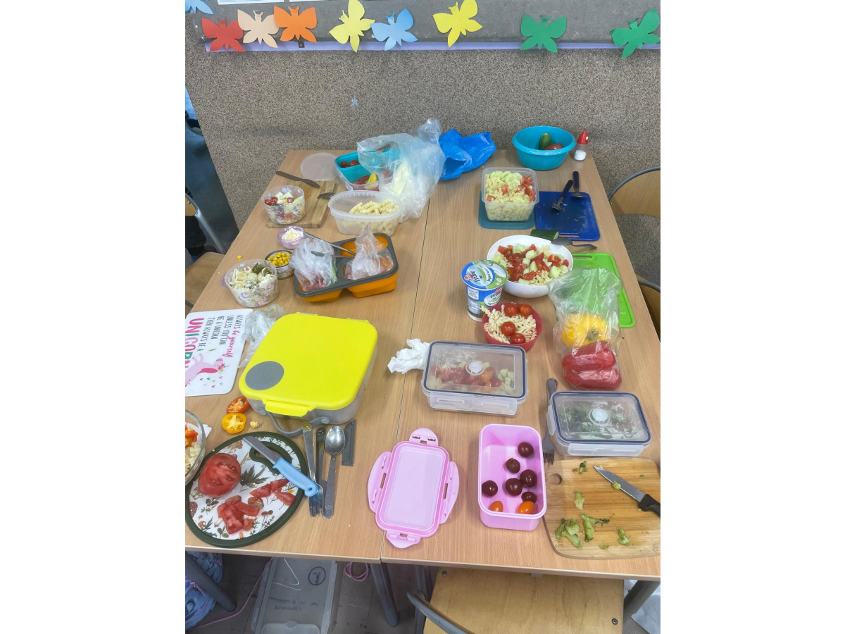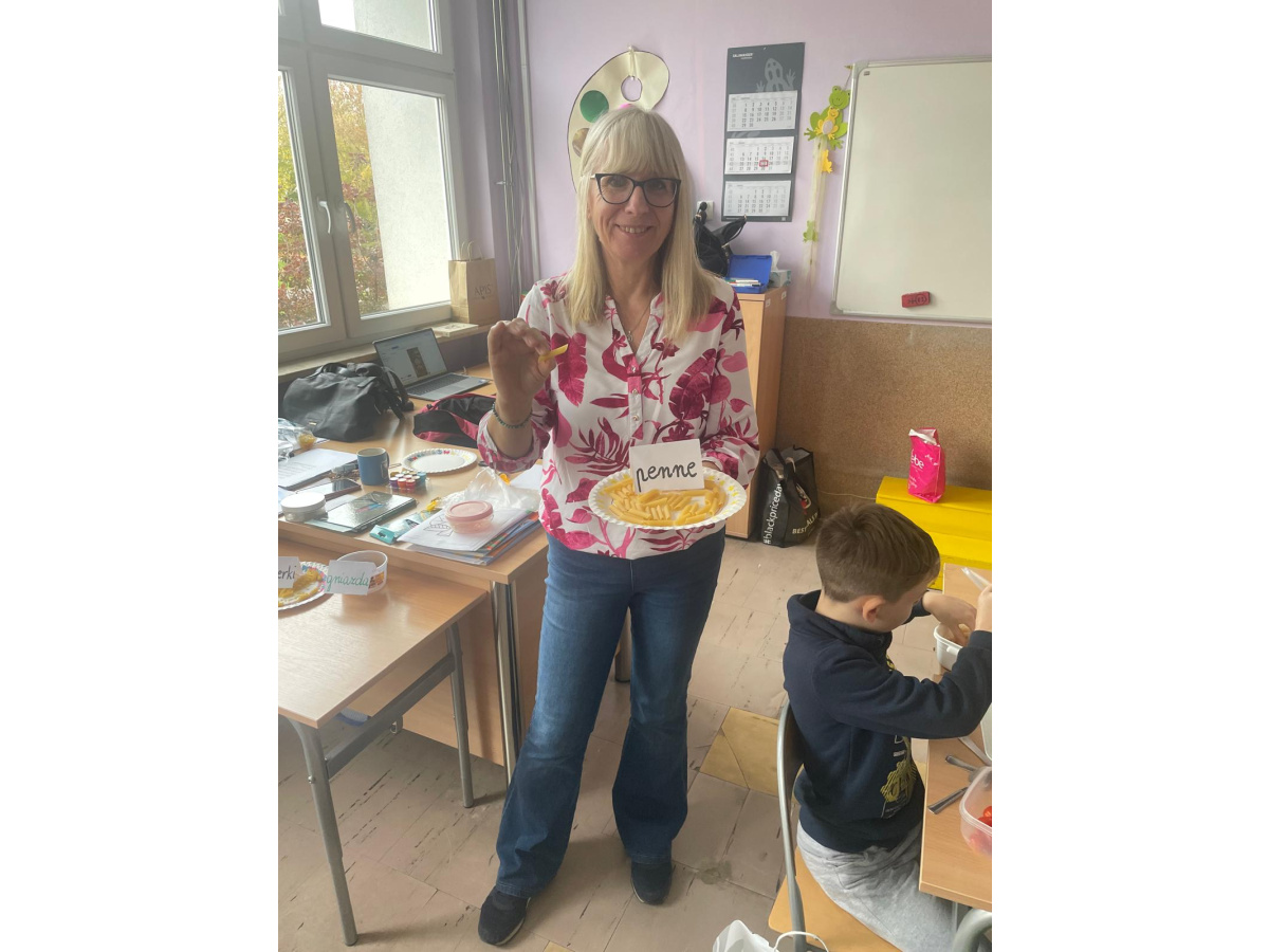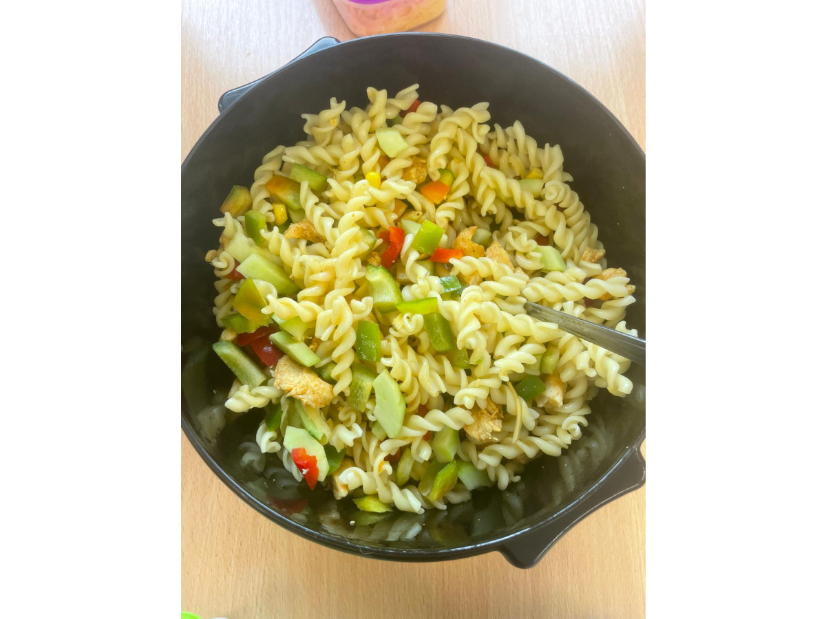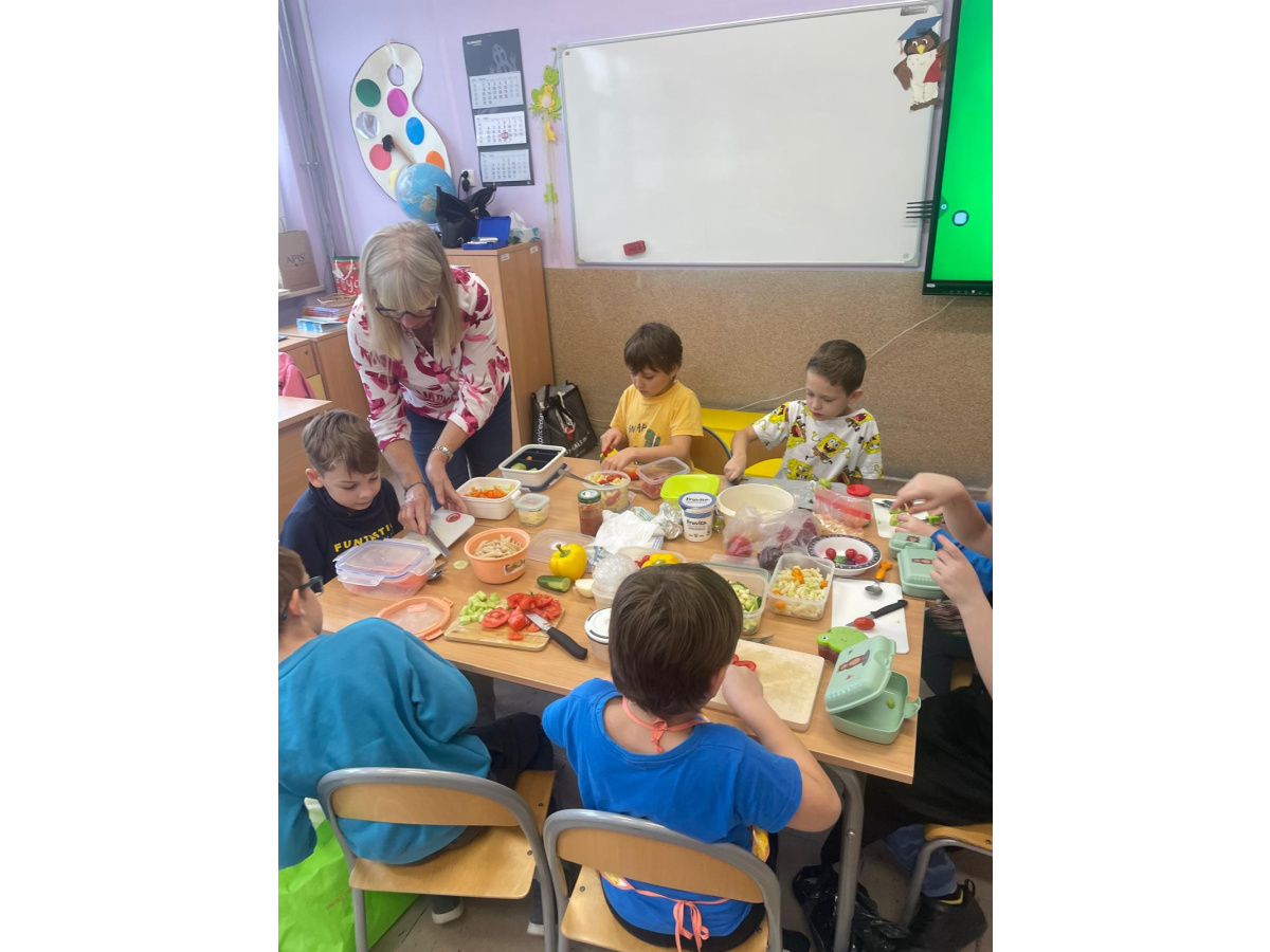 W piątek 24 października w szkole zorganizowaliśmy jesienny dzień dla zdrowia, w tym samym dniu przypadał też Dzień Walki z Otyłością, który ma na celu podnoszenie świadomości społecznej na temat otyłości jako poważnego problemu zdrowotnego, jego przyczyn, skutków i metod profilaktyki. Tym zajęli się uczniowie klas IV –VIII. Natomiast na poziomie klas I –III rozmawialiśmy dlaczego należy spożywać owoce i warzywa ? Przypomnieliśmy sobie piramidę zdrowia. Przerwy spędzaliśmy aktywnie, ćwicząc w rytm muzyki. Przygotowaliśmy sałatki makaronowe, w których ukryły się jesienne smaki. Wykorzystaliśmy do nich różnego rodzaju makarony, sery, warzywa. Uczniowie zrobili prawdziwe wariacje makaronowe. Wszystkie dania były smaczne, zdrowe i kolorowe. Bardzo nam smakowały. Wykorzystaliśmy też makaron do zrobienia korali. Dzień dostarczył nam wiele pozytywnych wrażeń.