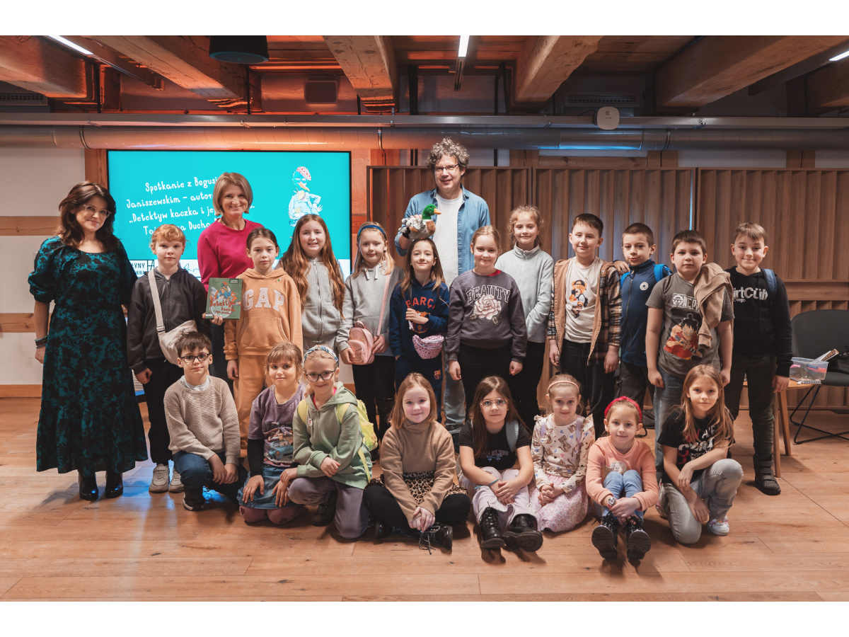 W poniedziałek 2 marca klasa 2c wybrała się do Młynów Rothera na spotkanie autorskie z Bogusiem Janiszewskim, autorem książki „Detektyw Kaczka i jego paczka. Tajemnica Ducha Młyna”.