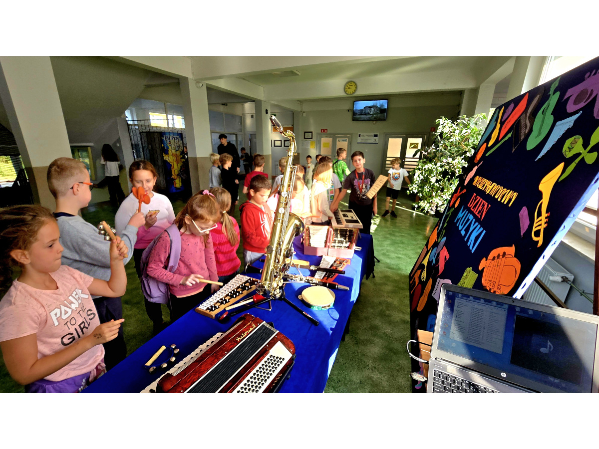 Z tej okazji w naszej szkole 1 października rozbrzmiewała muzyka w różnych stylach i gatunkach – od klasyki przez jazz, aż po współczesne brzmienia z różnych zakątków świata. Na szkolnym holu uczniowie mieli również okazję obejrzeć wystawę instrumentów muzycznych, a nawet samodzielnie zagrać.