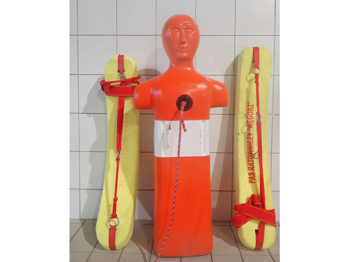 Uczestnicy zajęć zapoznaję się ze sprzętem ratowniczym, który udostępnił Rejonowy WOPR w Bydgoszczy, uczą się go wykorzystywać i stosować tę wiedzę w praktyce.
