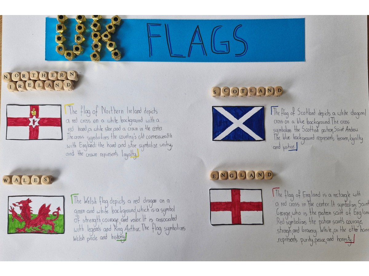Nauczyciele języka angielskiego z przyjemnością informują, że KONKURS JĘZYKA ANGIELSKIEGO DLA KLAS 4-8 „UK FLAGS” został rozstrzygnięty. Przedmiotem konkursu było stworzenie plakatu dydaktycznego przedstawiającego 4 flagi krajów Zjednoczonego Królestwa Wielkiej Brytanii: Irlandii Północnej, Walii, Szkocji oraz Anglii oraz wykonanie opisu każdej flagi w języku angielskim.Technika wykonania pracy była dowolna (praca plastyczna, grafika, collage, wycinanka, wyklejanka, konstrukcja przestrzenna, techniki mieszane). Ocenie podlegała zarówno część plastyczno-techniczna: estetyka, oryginalność, samodzielność oraz ilość włożonej pracy w wykonanie zadania, jak i poprawność językowa opisu. Uczniowie wykonali wiele prac, więc komisja konkursowa miała bardzo trudne zadanie.