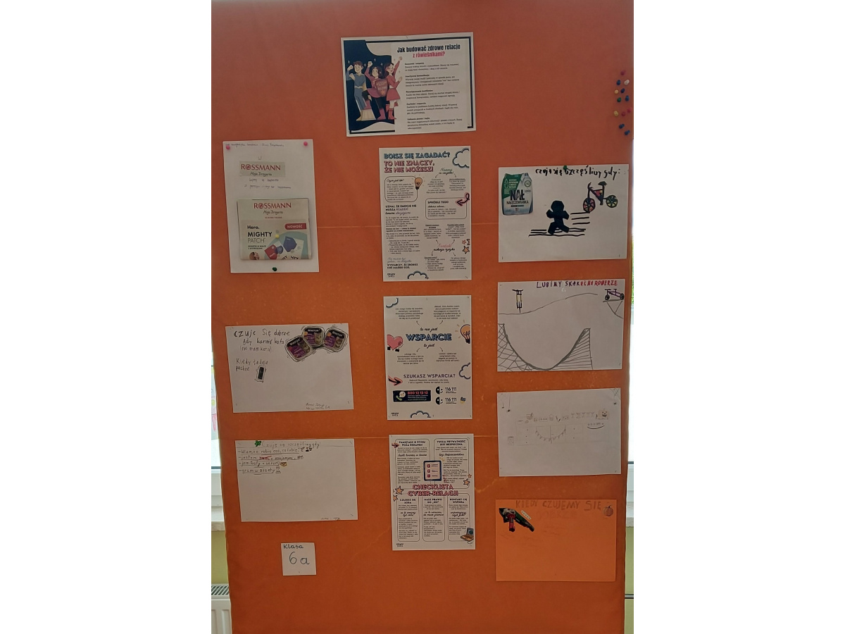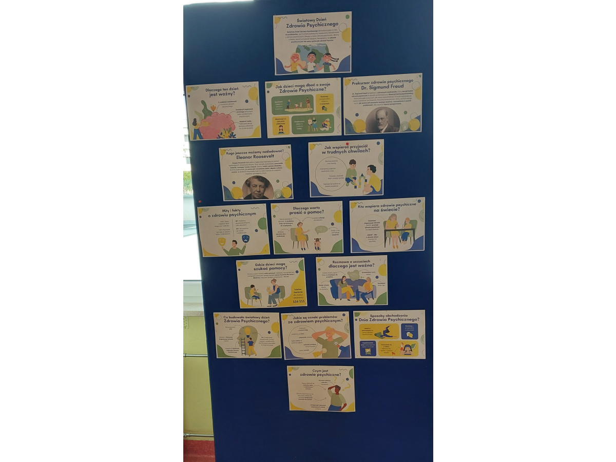 Z tej okazji w klasach odbyły się rozmowy poświęcone emocjom, sposobom radzenia sobie z trudnymi sytuacjami oraz temu, gdzie można szukać pomocy, gdy czujemy się źle. Na szkolnych korytarzach pojawiły się plakaty przypominające, że zdrowie psychiczne jest tak samo ważne jak zdrowie fizyczne. Uczniowie klasy 6a przygotowali prace plastyczne o tym, jak dbać o swój dobrostan psychiczny.
