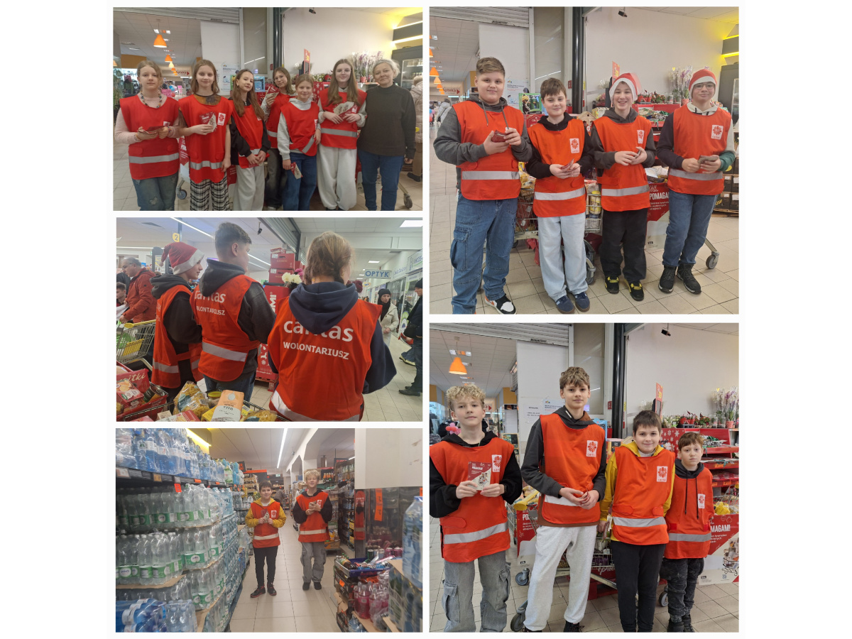 W dniu 6 grudnia 2025 r. wolontariusze Szkolnego Koła Caritas po raz kolejny uczestniczyli w ogólnopolskiej zbiórce żywności "Tak. Pomagam!", która odbywała się w Biedronce przy ul. Magnuszewskiej 6. Dzięki zaangażowaniu naszych uczniów (także tych, którzy "nie załapali się" na zdjęcie) i wspierających nas nauczycieli oraz dzięki ofiarności wielu ludzi udało nam się zebrać 208 kg i 28 l produktów, które zostaną przekazane jako świąteczny dar dla najbardziej potrzebujących rodzin. To była rekordowa zbiórka!