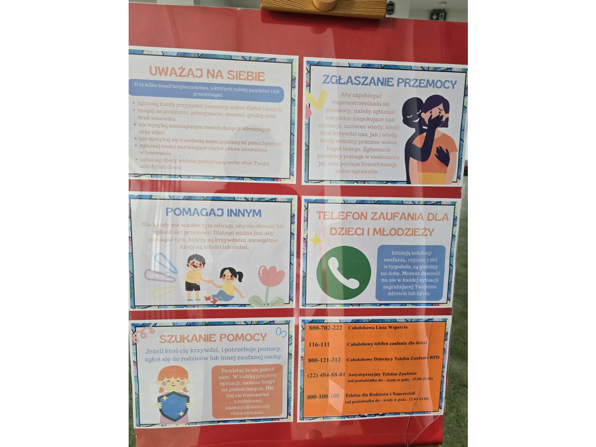 * wskazanie uczniom w jaki sposób mogą poradzić sobie z przemocą doświadczaną ze strony rówieśników, członków rodziny oraz innych osób, gdzie i u kogo powinni szukać pomocy,