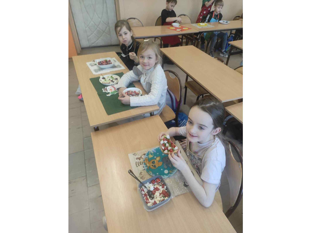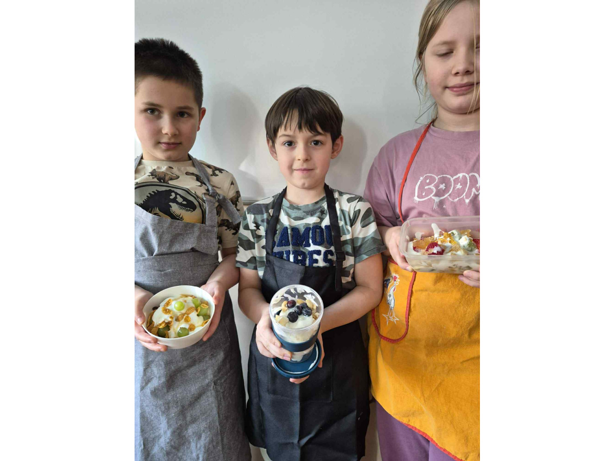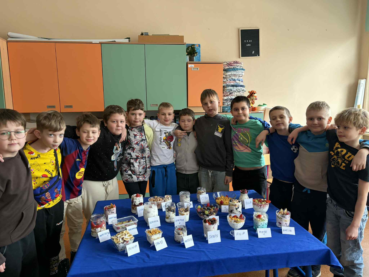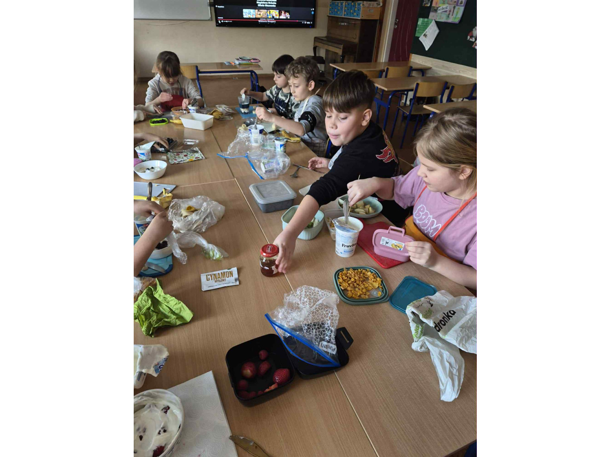 Ferie tuż, tuż, a my zorganizowaliśmy „zimowy dzień dla zdrowia”. W tym dniu czekało na nas wiele aktywności. Przypomnieliśmy sobie zasady bezpiecznych zabaw na śniegu rozwiązując quiz. „Ulepiliśmy” papierowe bałwanki, które zdobią nasz hol. Zrobiło się miło i zimowo. Następnie skupiliśmy się na wartościach odżywczych mleka i przetworów mlecznych. Uczniowie klas I – III przygotowali „białe szaleństwo” na bazie jogurtu naturalnego i twarogu z owocami, bakaliami i nasionami chia. Wszyscy pracowali w dużym zaangażowaniem i zrobili zdrowe, smaczne danie na drugie śniadanie. Był to bardzo udany dzień.